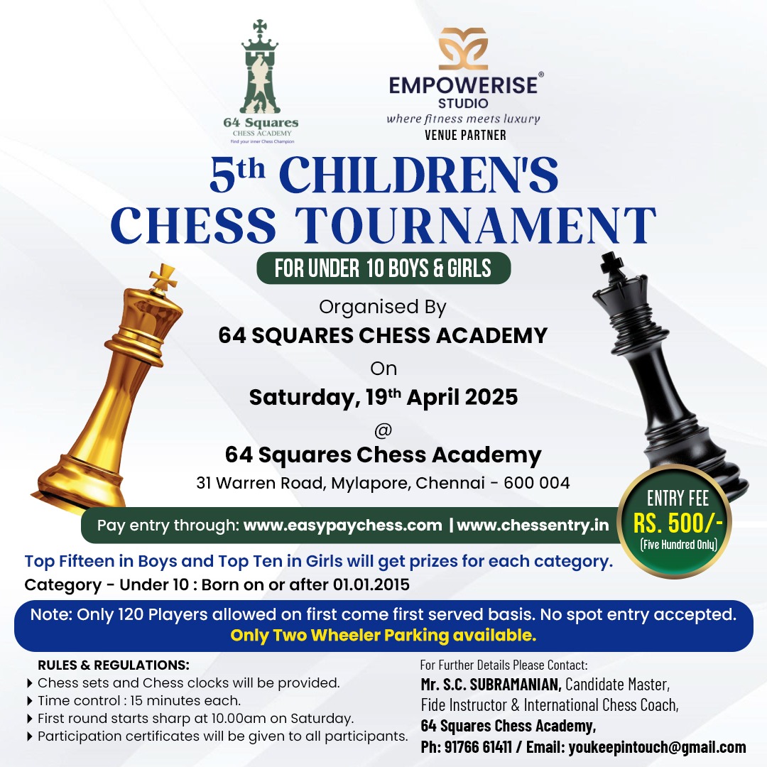Venue: 64 Square Chess Academy ,Warren Road.
