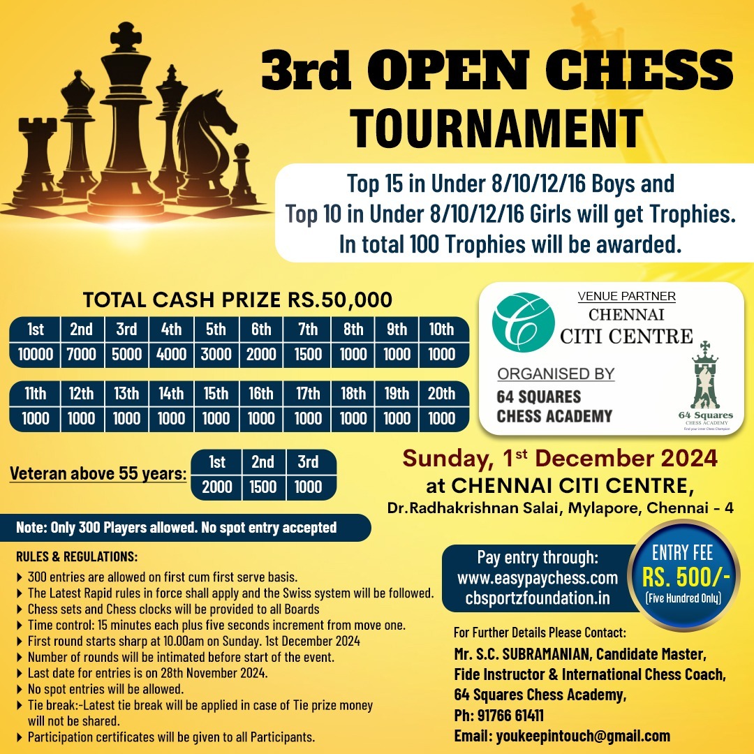 Rs. 0.25 (Rapid) Rs. 0.25 (Blitz)Location: View on Map